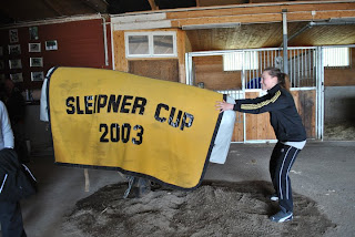 bilden nedanför: Där vi sov första natten var i ett klassrum, vi somnade inte förns ungefär vid halv 3 på natten/morgon..hehe innan det var läggdags gick vi på rundtur på dethär gymnasiumet, förresten så hette det faktiskt Jälla gymnasium och vi gick och inspekterade hur dom hade det jämfört med oss eftersom att vi också är en Naturbruks skola... dom hade ridhus, egen ridbana, egen hinder utrustning, sjukt snygga hagar, hopp hästar på MSV nivå.... jaaaa man hade en god lust att byta från forslunda eftersom att min skola är så förbannade bara travintresserad. Bilden nedanför är då ja hoppar över ett hinder på deras ridbana :)